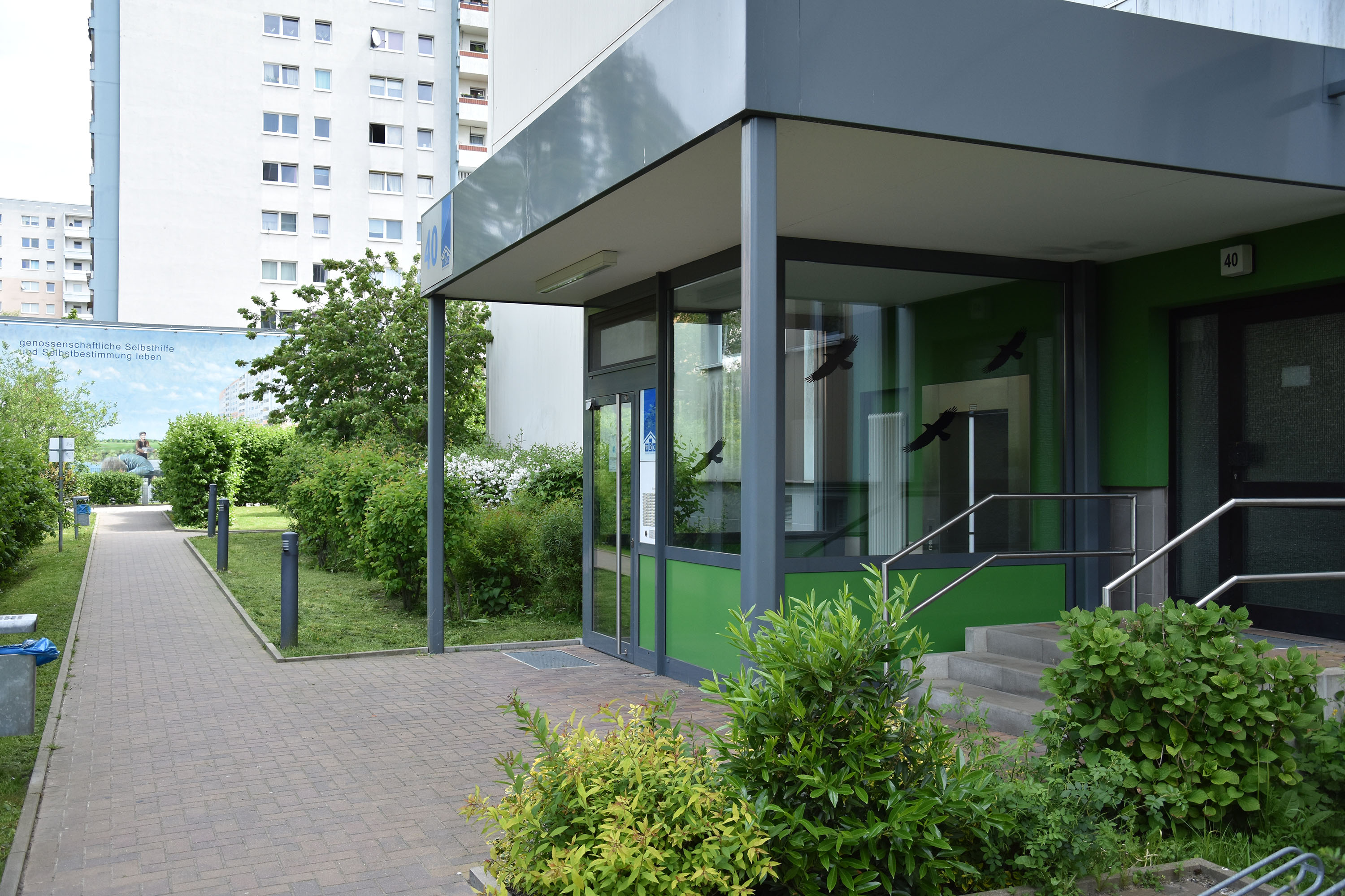 Ob mit Kinderwagen, Rollator oder Rollstuhl - der Großteil der Wohnobjekte ist für die Bewohnenden der Wohnungsbaugenossenschaft “Humboldt-Universität“ eG ebenerdig zu erreichen.